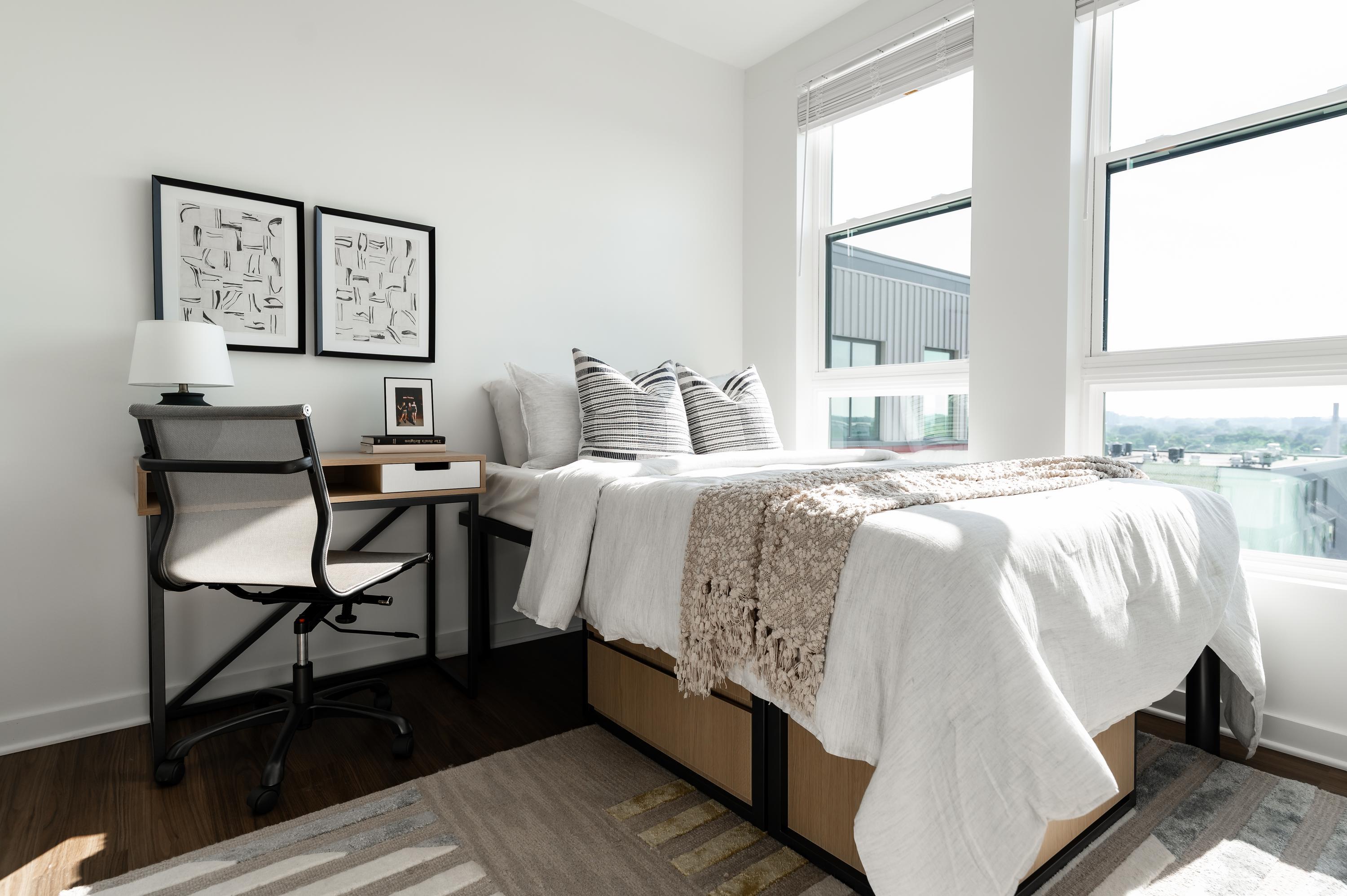 Representative bedroom featuring Rambler's standard furniture and finishes.